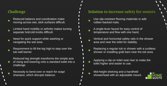 Understanding these problems, we need to adapt the space to support our parents’ mobility and independence. Here’s a list of practical solutions you can implement to enhance bathroom safety for elderly people.