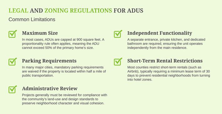 Understanding zoning rules and building codes is essential, as they determine what you can build, where you can build it, and how large it can be. Recent legislative changes have streamlined the process, creating new opportunities for single-family homeowners. However, compliance with technical standards and local regulations remains a strict requirement.