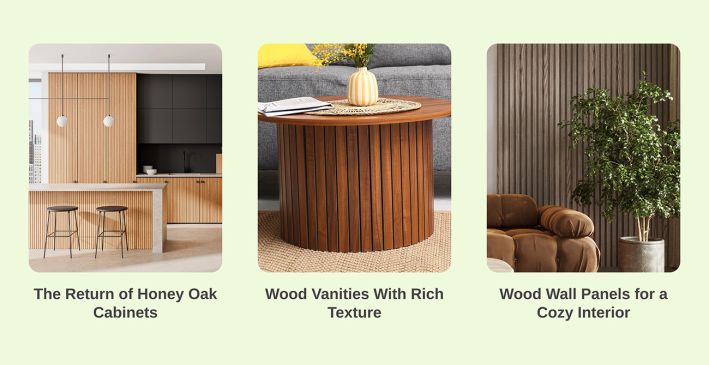 "It's not necessarily a full-blown comeback, but I've definitely noticed a soft return — particularly in cabinetry, millwork details, and furniture. Clients aren't always asking for 'honey oak' by name, but they are gravitating toward natural wood tones that offer warmth and character." — Cathleen Gruver, premium home builder.